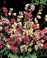 Ixia, also known as African Corn Lily, produces star-shaped flowers in a rainbow of various colors on 18" long wiry stems in mid-spring.  The species hybridize easily, so new forms may appear.  The strap-live leaves are quite handsome.  You can plant them in spring anywhere in the garden or in containers.  Cut flowers are long-lasting.  Fragrance is pleasant but discrete, sort of like the vegetable flowers in your garden.  Ixia is ideal for bee and butterfly gardens.